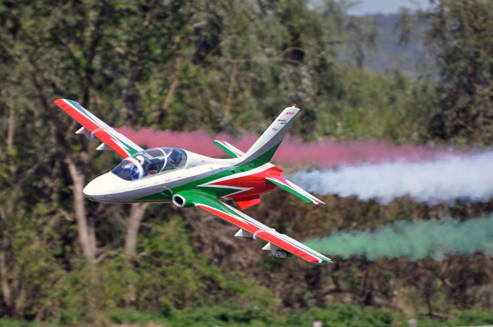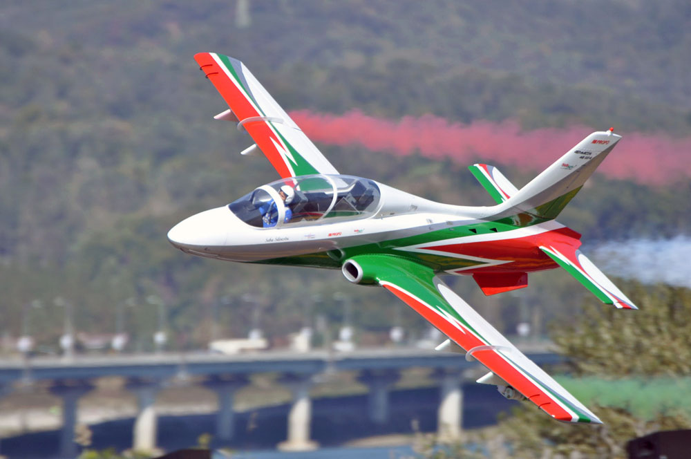 MB339(ドイツAir World社製)には推力27kgのJetCat製エンジンを搭載、3本のスモークを吐いてローパスする迫力と音楽に合った優雅な演技は感動モノでした。