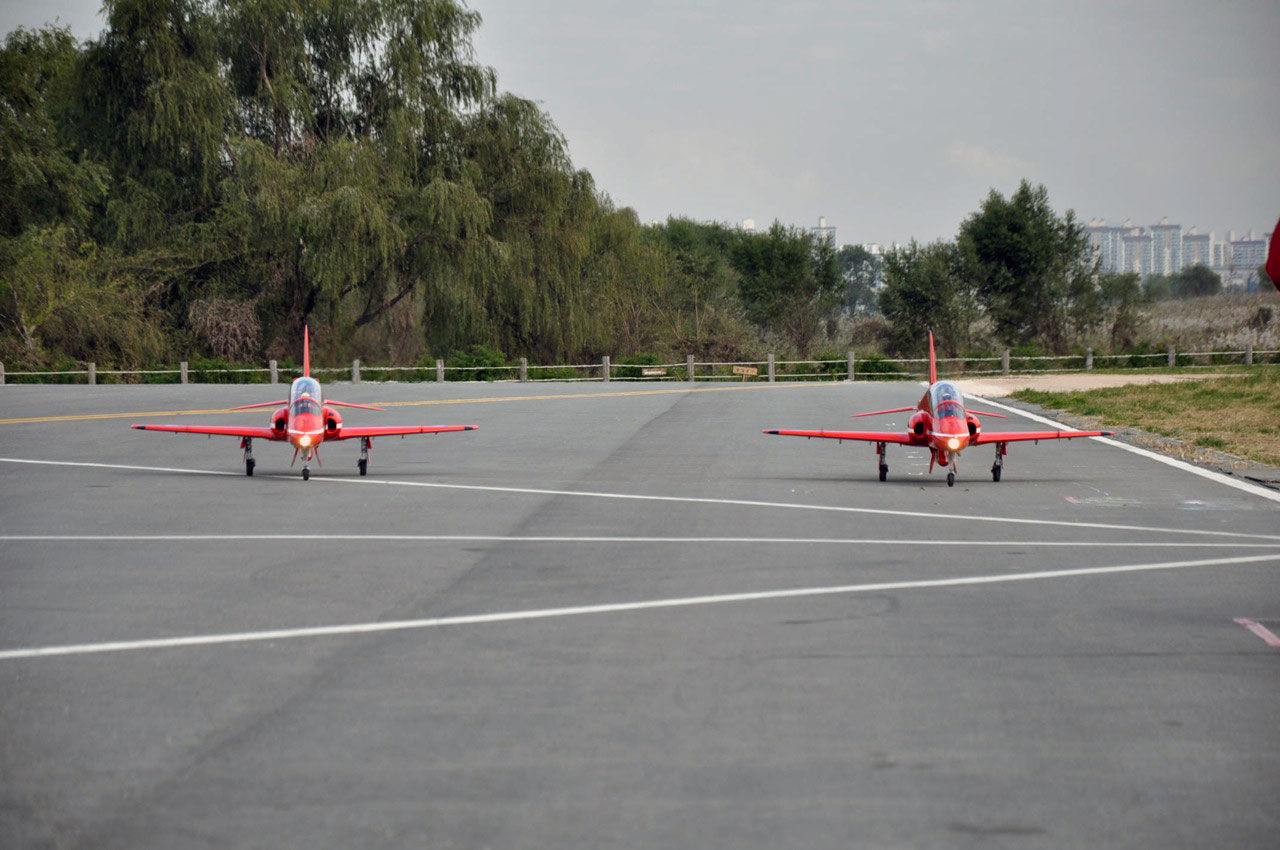 大型機が中心のフェスティバルでガソリン機やジェット機がソウル市の空を激しく飛び回りました。また会場は街中にある大きな公園内に作られたラジコン機専用の飛行場で、いろいろな面で迫力満点のフライトフェスティバルとなりました。写真はセバのmb339でエンジンの始動後、オフィシャルのタキシング指示を待っているところです。なお機体を押さえているのは不肖、小林(私)。