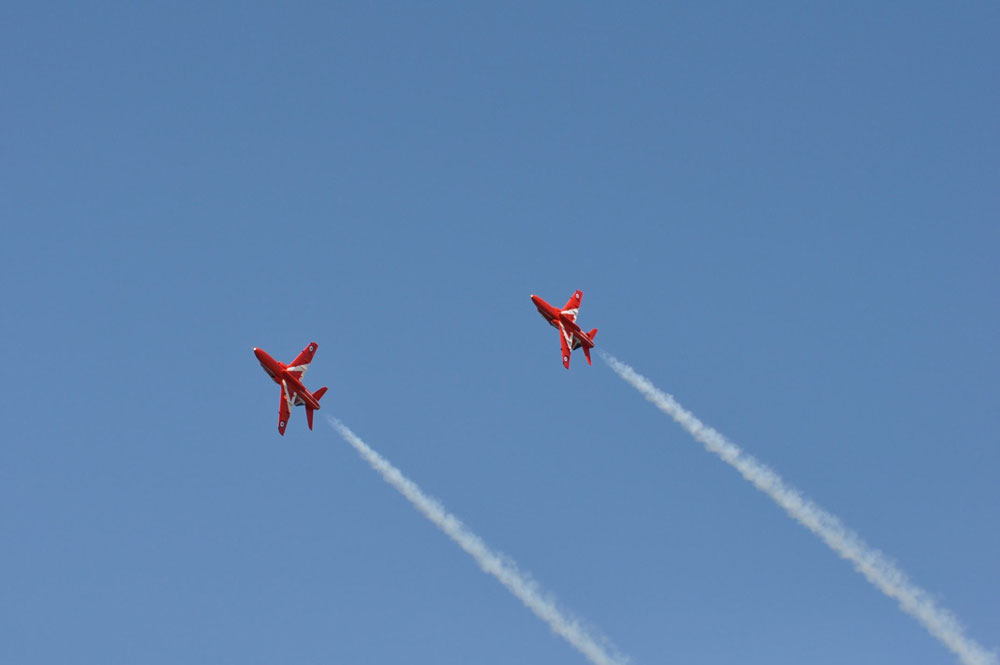 この赤い2機はイギリスのチームのもので音楽に合わせたフォーメーションフライトは実にすばらしいものでした。