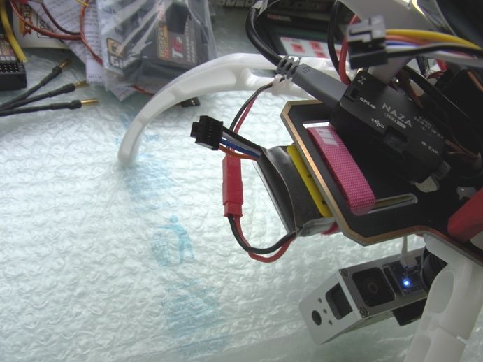 ジンバル専用の3セル480mAhのバッテリーを基板から出ているJSTコネクターに接続するだけで動作します。