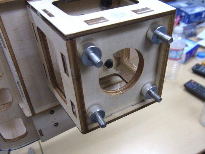 アルミの削り出しブロックをM3ボルトで胴体背中の所定の場所に固定します。