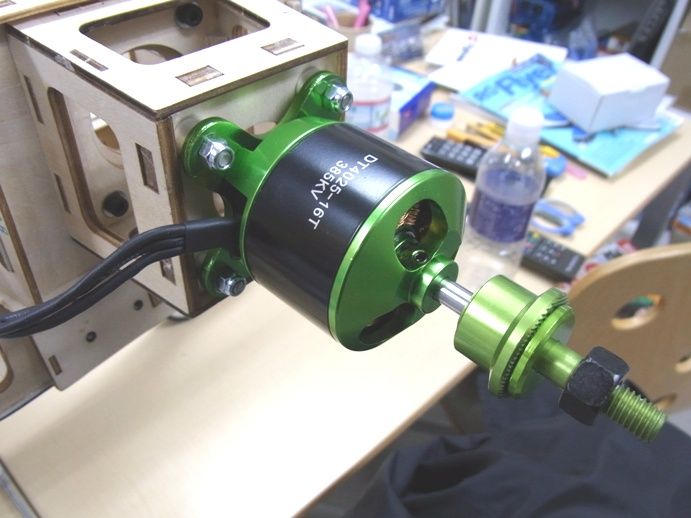 モーターはHacker A50-16Sとほぼ同等のスペックの廉価版テストモーターです。結果がよければ販売も考えています。KV385です。