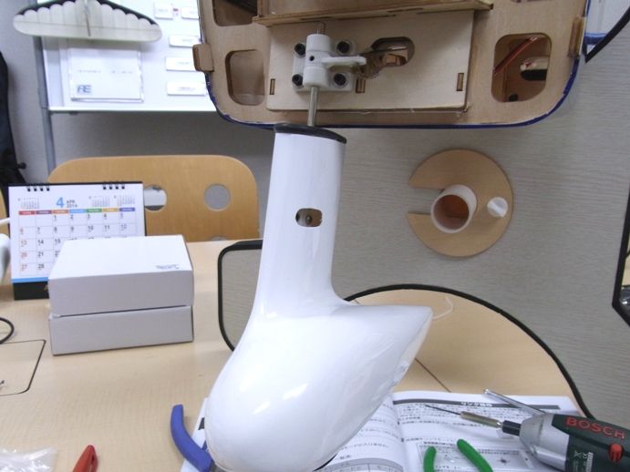 うまくノーズギアが動くようになり、ノーズギアの工作まで終了しました。あとはキャノピーとカウルの取り付け、エルロンサーボとフラップの動作設定をすればいよいよ完成です。
